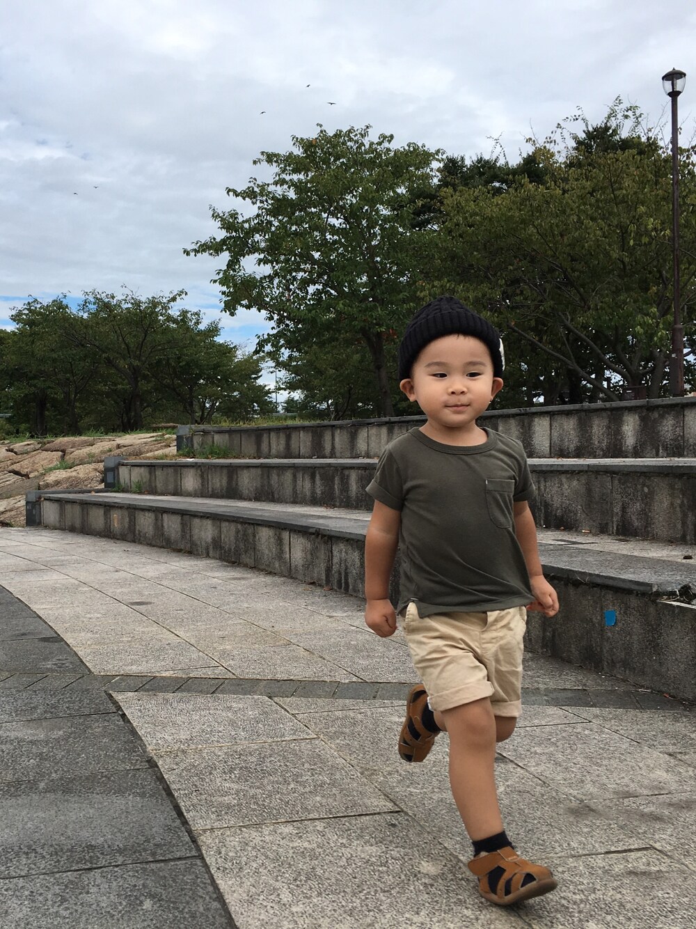 秋色コーデしてみました♡ まだニット帽は暑かったみたい…脱がせたらすごい汗でした…でも、やっぱりニット帽が好き♡