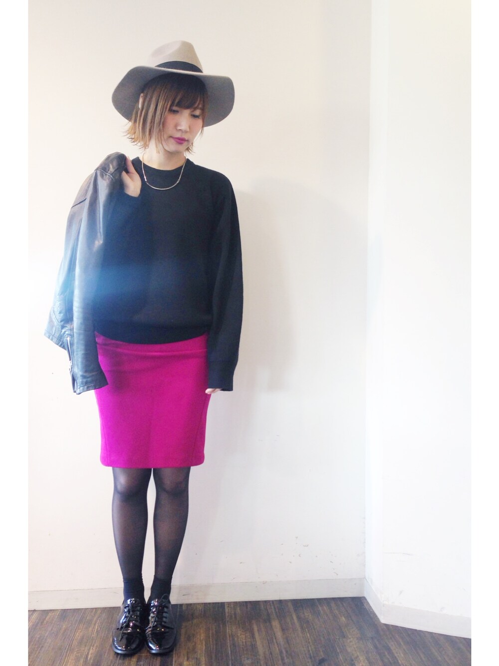 ブラックで暗くならないようにピンクのスカートがポイントです♪
