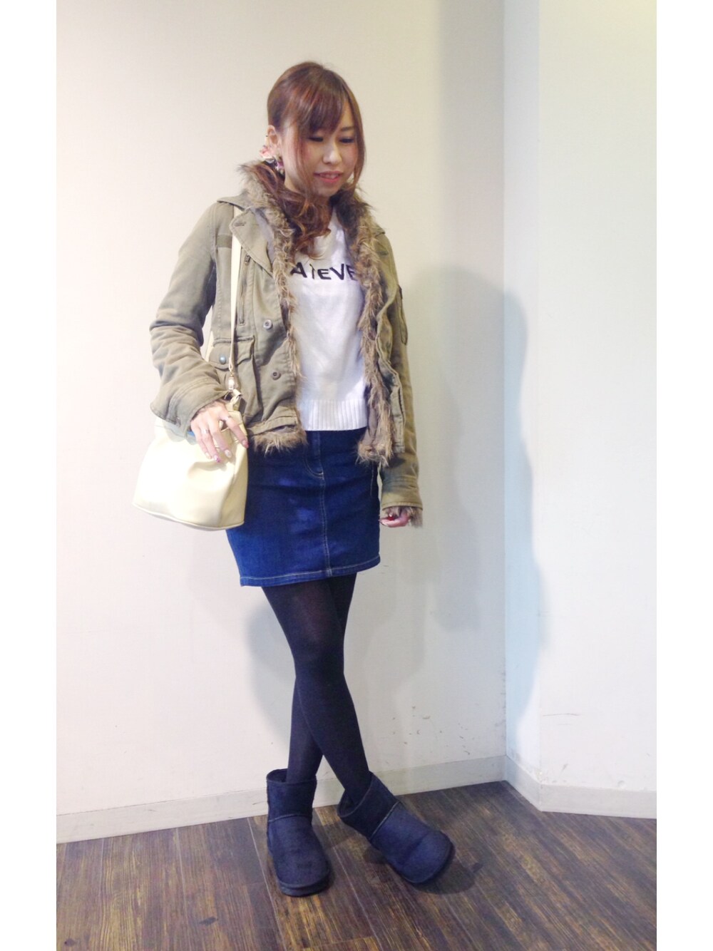ニットはMURUA シュシュはCA4LA ムートンブーツはGUです☆