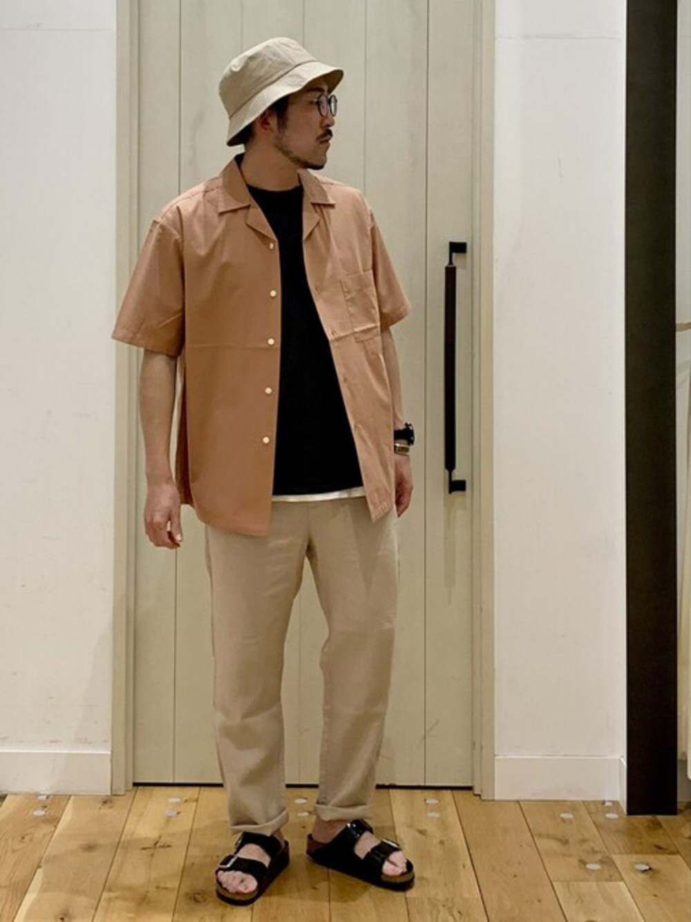 イージーケアの定番オープンカラーシャツ。リネンのパンツと合わせて夏らしく。 シャツは大きめに着たい方は40がおすすめです。