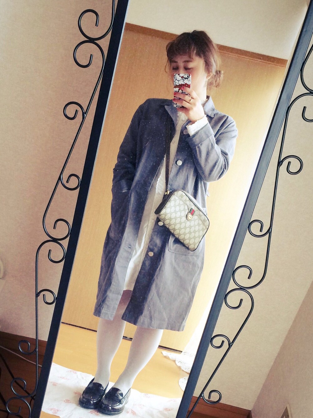 アウター:rivet&surge バッグ:GUCCI ワンピース:BEAMS BOY シューズ:HARUTA