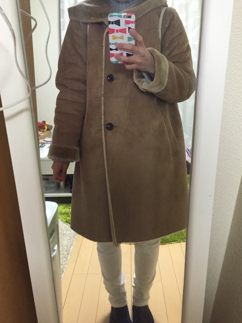 やまぢあゆみのムートンコート「DOORS フェイクムートンフードコート」を使ったコーディネート