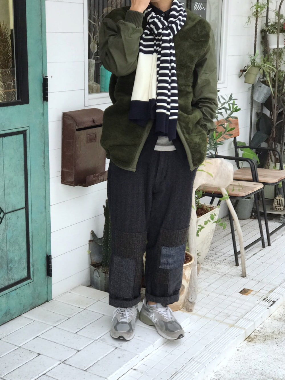 ルーズなウールワイドパンツにミリタリーJKを取り入れたカジュアルダウンスタイル✨ 冬の小物使いでちょっと個性的な印象を作ります🎶