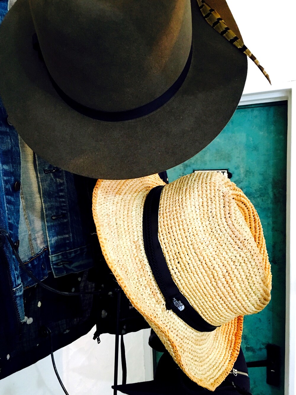 ヘビロテ中のハット達^ ^ これからの夏シーズンはラフィア椰子という目の荒い素材で出来ているノースのサファリハットがmain! 玄関マットのような面白い素材感とあご紐がいーんですよね!