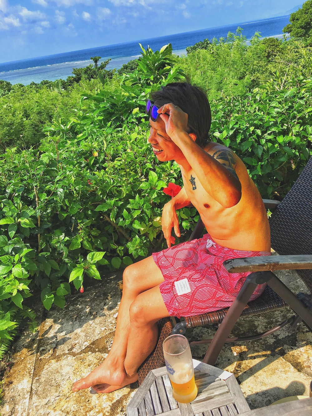 石垣島のプール付きコテージで♪( ´▽`) 昼からのオリオン最高です😆
