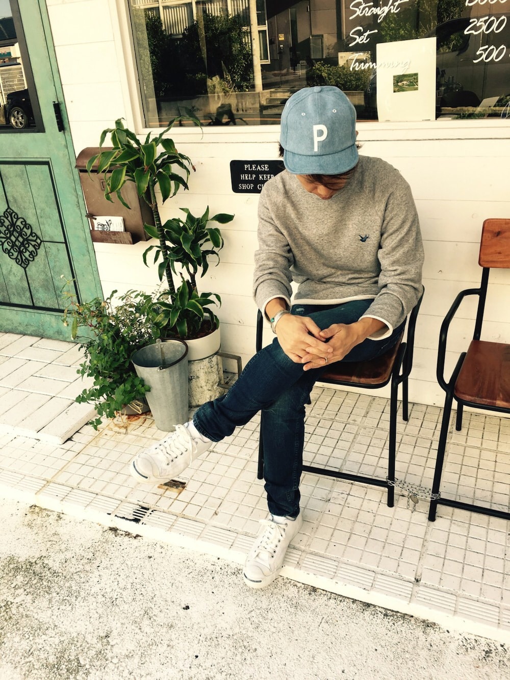 fortpointbostonから新しく発売した、ラグランカットソーは着心地抜群😝これからの季節重宝しますね〜‼︎キャップもストレッチデニムで被りやすい✨