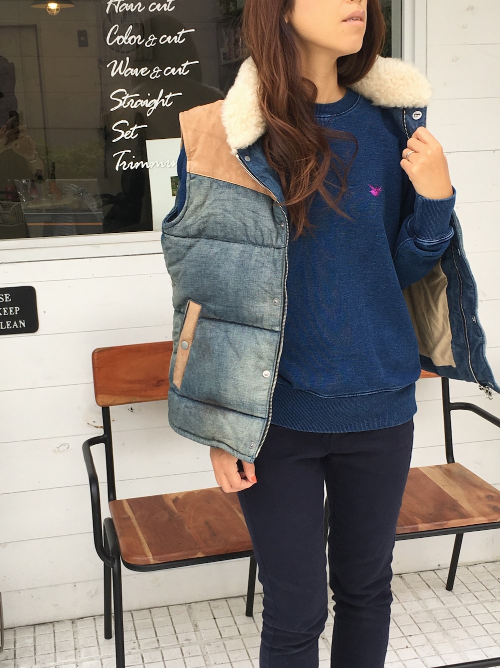 オリジナルのデニムスウェットをヘビロテしてます😍 ワンポイントの刺繍がアクセント✨