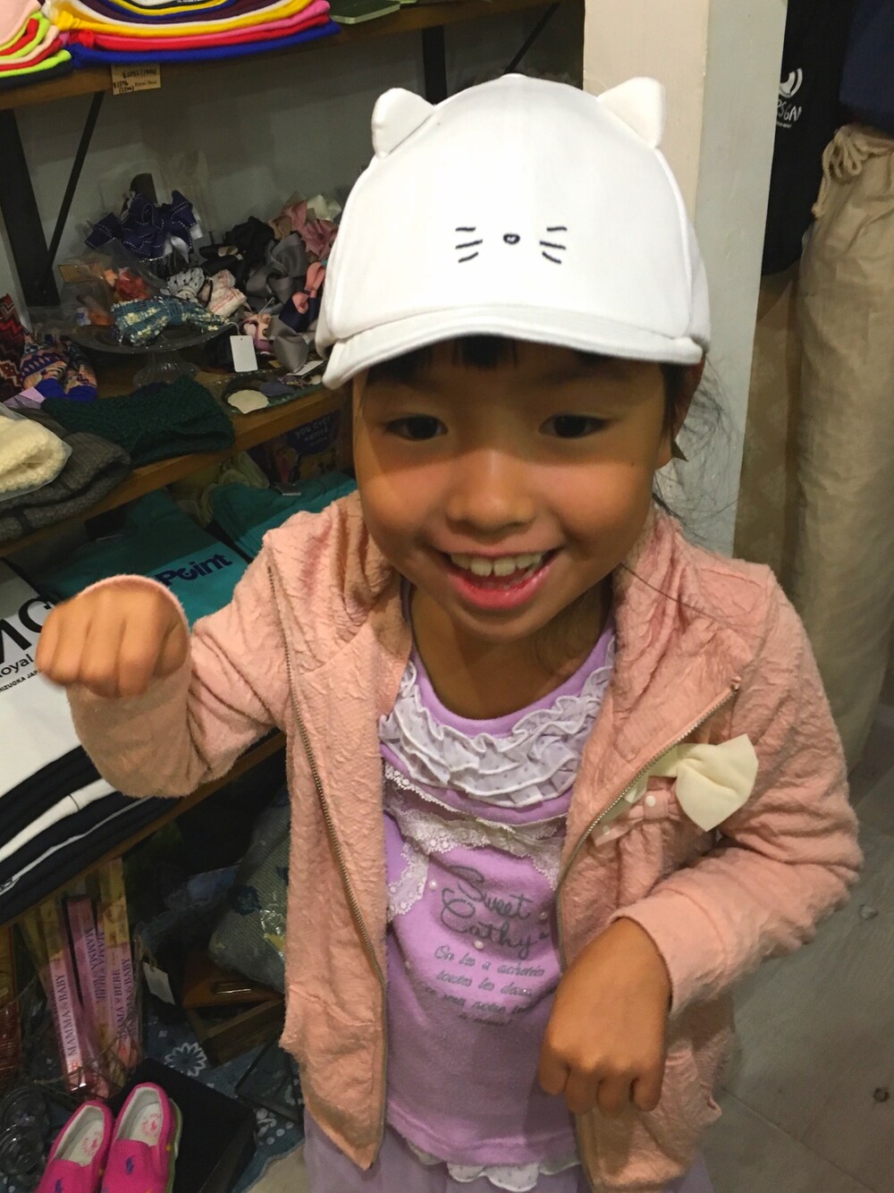 前髪cutにきた可愛いモデルちゃんに色々試してもらって✨猫ちゃんキャップがどハマりでした😍 オトナとお揃いがあるブランドなのですごくオススメ!