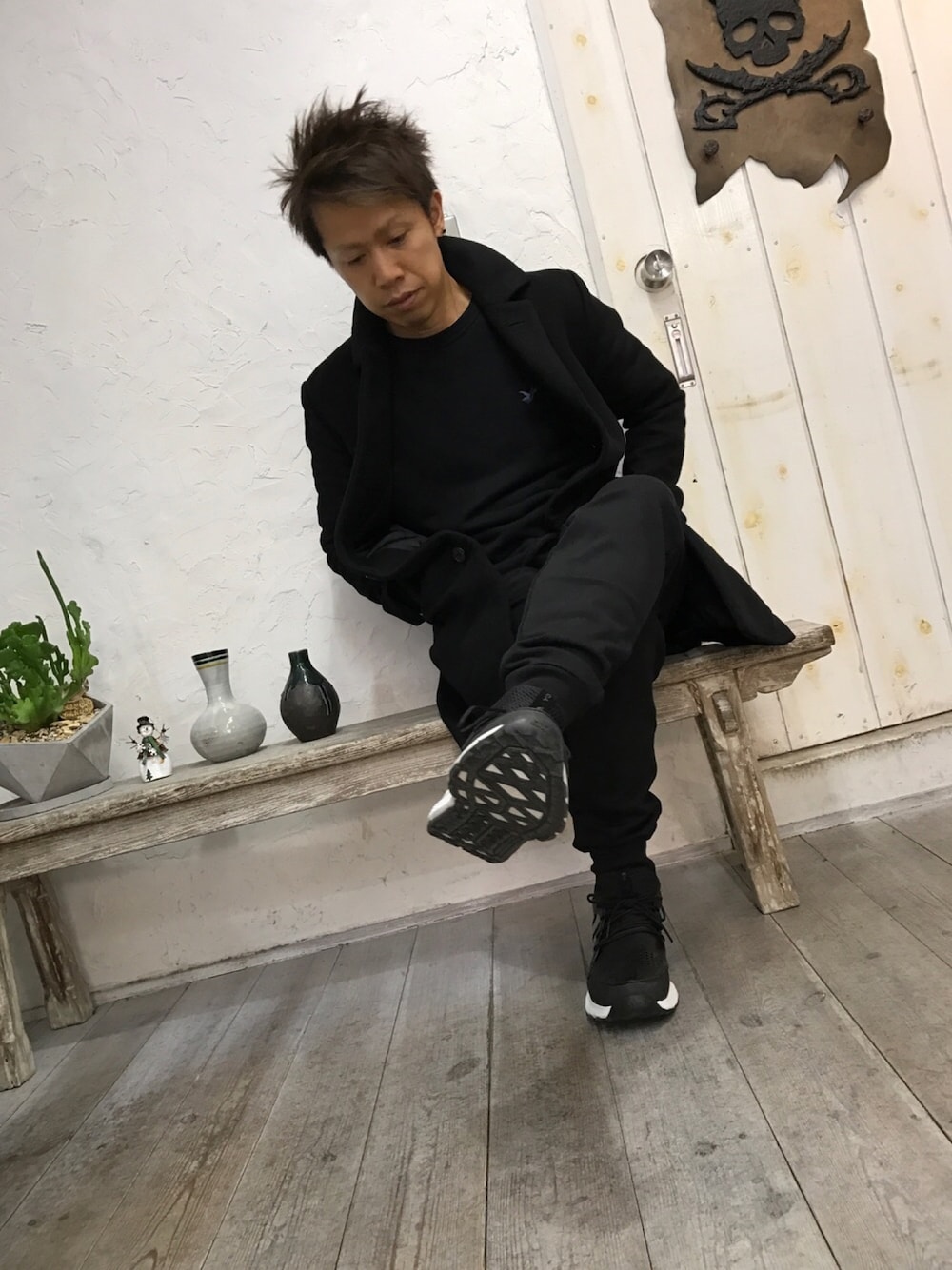 最近のお気に入りのスニーカーに合わせたスタイリングです😁 スポーティなSTYLEにチェスターコートでモードっぽく✨