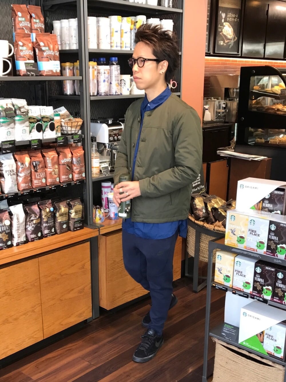 ナイキのテックフリースにshirtで綺麗めにスポーツMIX✨最近ハマってる色カーキのアーバンの中綿のノーカラーJKで色を足して!