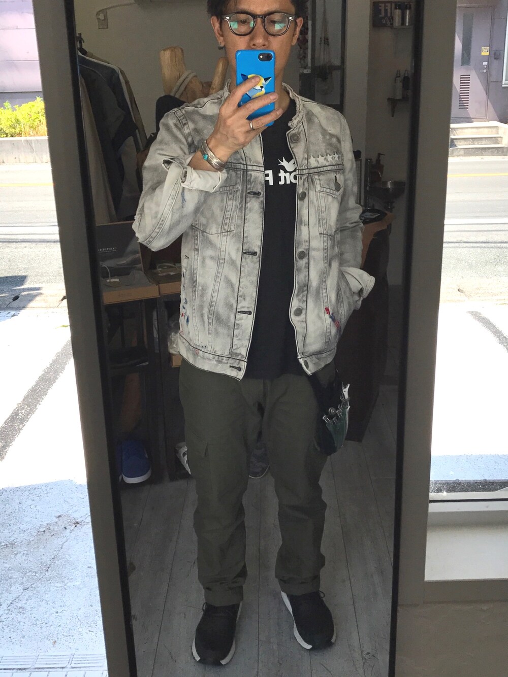 自分でカスタムした白いジージャンがお気に入りです。 朝のバイク🏍からの仕事STYLE✨