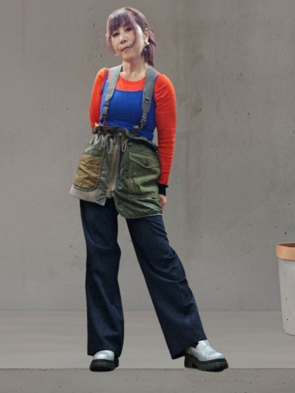 色遊びコーデです♪ オレンジのニットの上にロイヤルブルーのキャミソールを合わせるという変化球を使ってみました😁 パンツは敢えてのネイビーの綺麗めパンツ✨ 写真では見えづらいですが、ラメのストライプ が入っています✨ カジュアル×綺麗めでバランスよくまとめる事が出来ました😊👍 ̖́-
