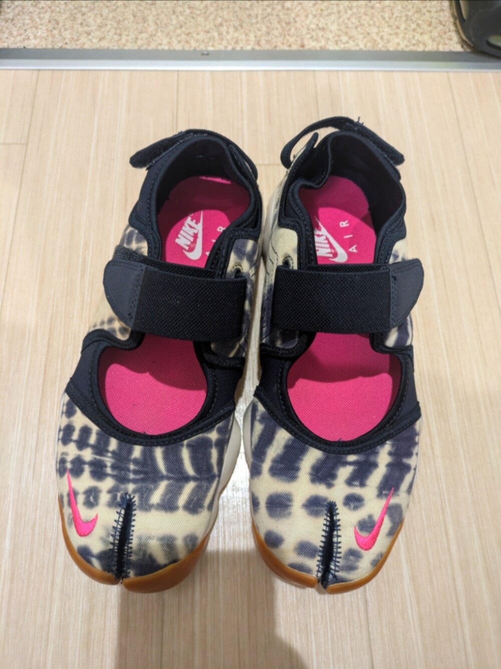 また、メルカリで購入しました。エアリフト3足目です。(・∀・)カラーは白黒のタイダイかと思います。珍しいカラーなんで、atomosにもないと思います。 迷彩、タイダイピンクでアシメ履きして行きたいと思います。(◠‿・)—☆
