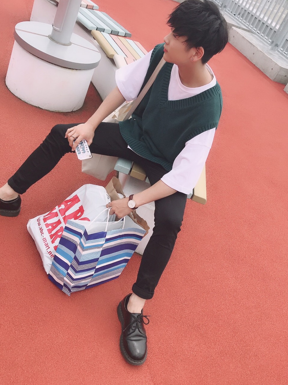 今日北海道から帰りますまじで好き友達愛してる 帰りたくないです でも帰ります。😙 そして今日のコーデです! GUだ買ったレディースのニットベストのXLサイズ!😆 横にスリットが入ってるのでお気に入りです!🤩