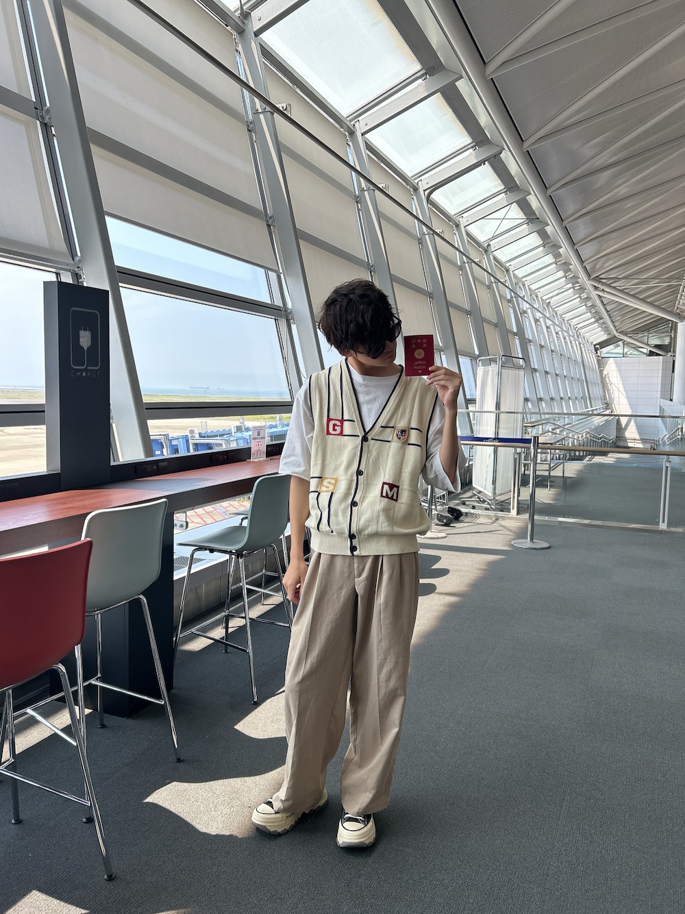 古着のベストを使ったコーデです。 厚底のconverseと柄ベストでカジュアルさを強めに出したコーデになっています。 黒ではなくチャコールグレーの厚底スニーカーであるところがポイントです! 韓国旅行1日目のコーデです👀