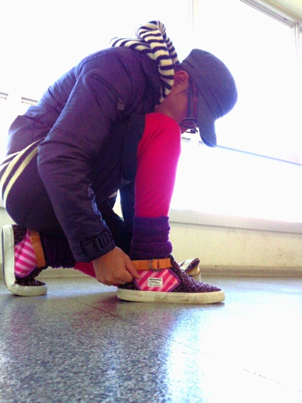 足元のピンク+パープルがポイント(o^^o) トップスのパーカーは柔らかいニット素材☆