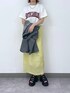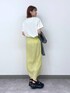 【トップス】 大きすぎず小さすぎないサイズ感で着回ししやすいTシャツです! ロゴ入りなので夏1枚で着ても寂しくならないです◎ 【ボトムス】 細身スカートですが伸縮性あるので足捌き◎です 薄手でサラッとしてるので涼しくて楽ちん! 裏地付きですが黄色は少し透け感が気になったので、薄めのインナーや腰回り隠すトップスがおすすめです👍🏻 ⭐︎着用アイテムはスクロール⬇️してチェック⭐︎