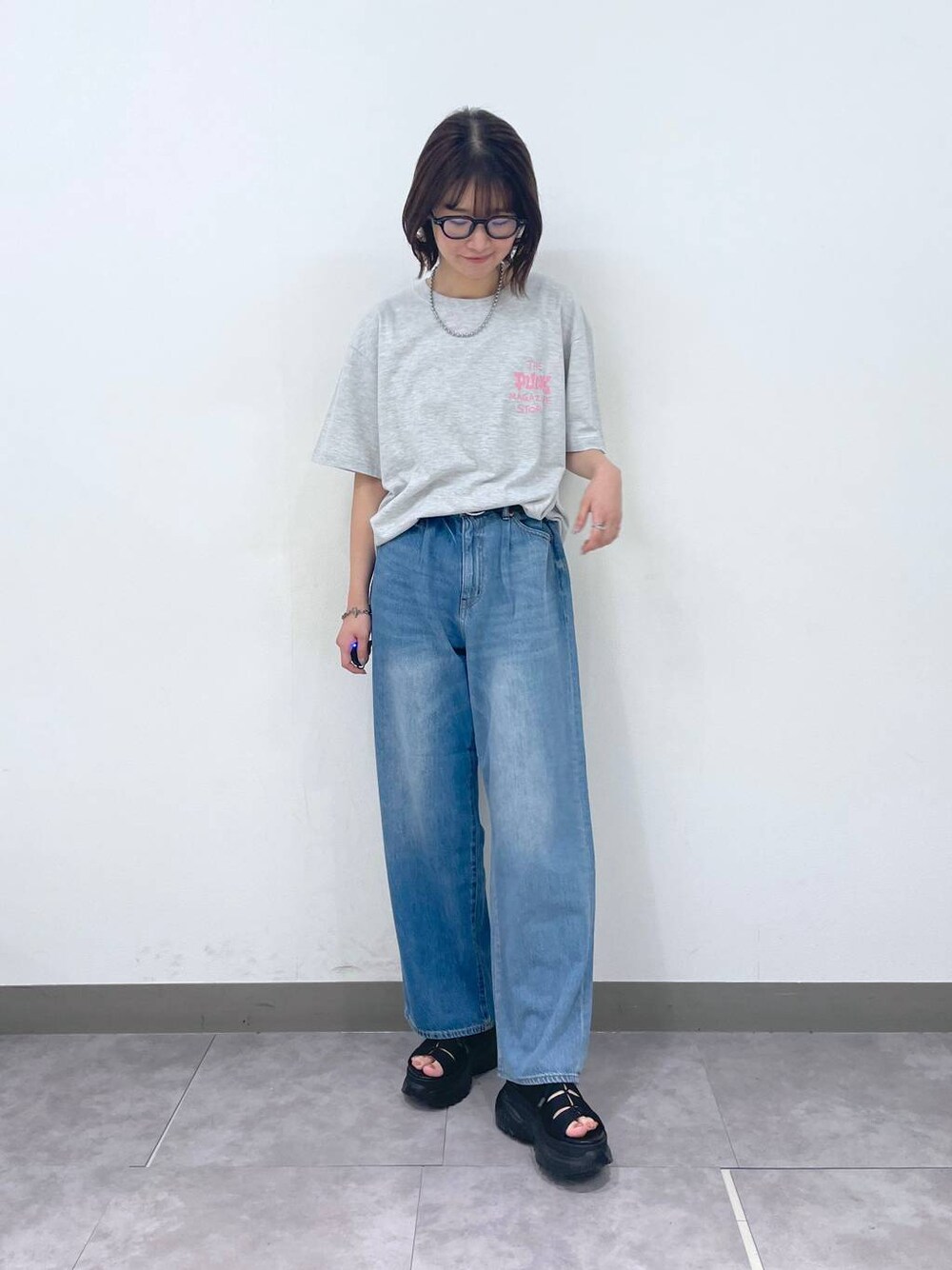 【トップス】 バッグプリントが可愛いTシャツ🫶🏻 メンズのLサイズなので、大きめでルーズに着れます! シンプルに着回ししやすいです 【ボトムス】 左右で色の濃さが異なるデニム 柔らかい素材なのでデニムの硬さが苦手な方でも穿きやすいです◎ メンズのMサイズ着用で、ウエストはベルトで絞ってます ⭐︎着用アイテムはスクロール⬇️してチェック⭐︎