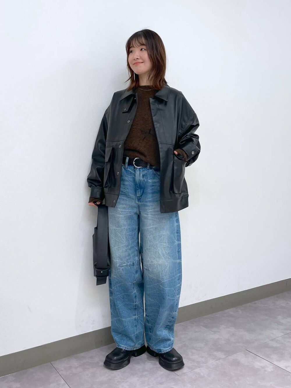 【アウター】 柔らかいフェイクレザーのブルゾンはとにかく楽に着れます♪ レザー特有の硬さや張り感が抑えられ、コーディネートに馴染みやすいのが嬉しい⭐️ 腕周りや身幅はしっかり広めで、インナーも着込めます◎ 厚すぎないので今から春先まで重宝します! ⭐︎着用アイテムはスクロール⬇️してチェック⭐︎