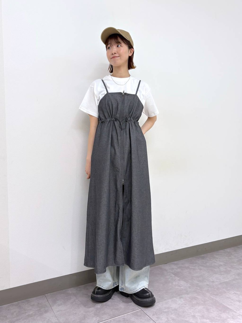 【ワンピース】 フロントジップがアクセントのデニムワンピース🩵 広がりが綺麗なAラインシルエットで、大人可愛い雰囲気に。ウエスト部分の絞りを絞るとスタイルにメリハリが出るのでおすすめです! 肩紐は長さ調節できます◎ ⭐︎着用アイテムはスクロール⬇️してチェック⭐︎