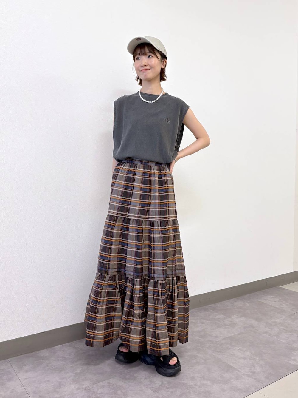 【トップス】 シンプルに着回せるノースリーブ 程良い加工感で柔らかく、さらっと着やすい◎ ややフレンチスリーブになっているので肩周りカバーも👍🏻 【ボトムス】 人気のコットンスカート! 裾に向かってふわっとボリュームのあるシルエットが可愛くて、トップスがシンプルでも一気に華やかになります✨ ウエストは総ゴムで伸びるのでとっても楽です! ⭐︎着用アイテムはスクロール⬇️してチェック⭐︎