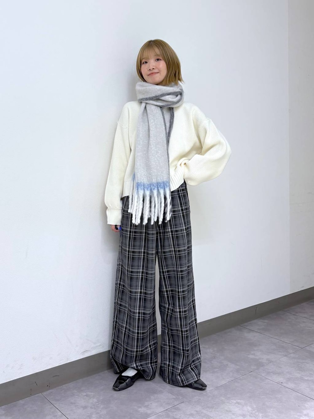 【トップス】 アゼ編みは立体感が出て高見えするアイテム✨ 首周りが広めなので着膨れ感なく顔周りすっきり見えるのが嬉しい! シンプルでも、袖口のたっぷり感などシルエットで可愛く見せられます! 【ボトムス】 タータンチェック柄が目を惹くパンツ! ウエスト総ゴムのイージー仕様で楽にデイリー使いしやすいです◎ 身長164cmでも丈感しっかりありました!股上深めです。 ⭐︎着用アイテムはスクロール⬇️してチェック⭐︎