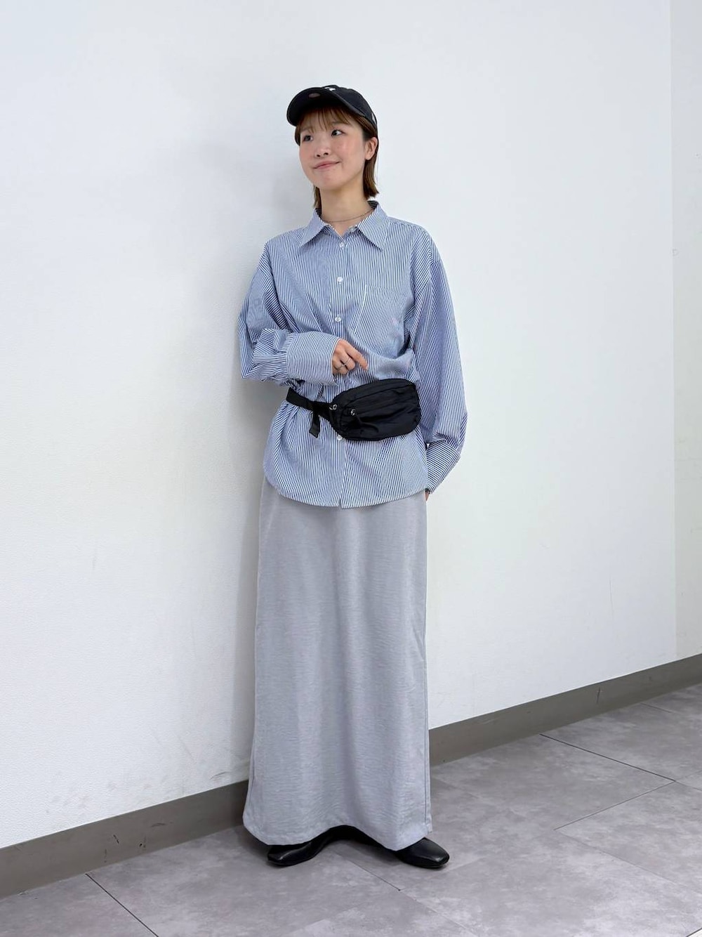 キャップとウエストポーチでカジュアルに外すのがポイント💡 シャツはさらっと素材で着心地◎!オーバーシルエットですが着膨れ感を抑えてくれます✊🏻 スカートはウエストゴム&紐付きなのが嬉しい^ ^ ⭐︎着用アイテムはスクロール⬇️してチェック⭐︎