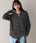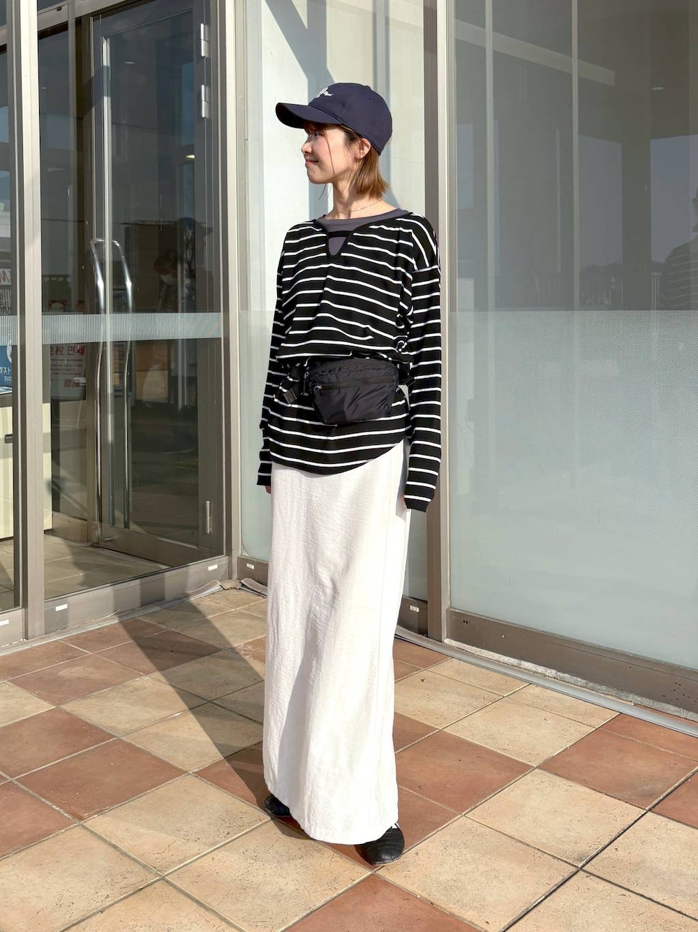 リアル店頭コーデ🖤 ボーダーのトップスはカジュアルになりやすいですが、これは首元が開いているので女性らしくすっきり着れるのがうれしい♩ 前後2Wayで着用可能です◎ ⭐︎着用アイテムはスクロール⬇️してチェック⭐︎