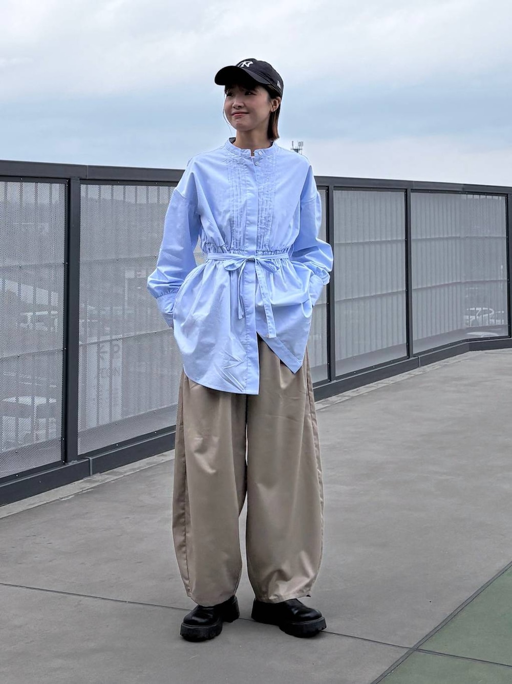 【トップス】 ウエストマークの着こなしができるチュニック🎀 付属の紐で絞ることもできますが、もともとウエスト部分にギャザーが入っているので自然とスタイルにメリハリをつけてくれます! ボリューム袖もかわいい♡ 【ボトムス】 POLO BCSアイテムのワイドパンツは、バルーンシルエットが今年らしい⭐️ さらっと素材で夏まで楽に履けます!ウエストも総ゴムです。 ⭐︎着用アイテムはスクロール⬇️してチェック⭐︎