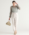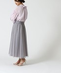 前後2WAYのブラウスはウエストマークをすることで、また違った印象に! ホワイトで締めてコーディネートをまとめるバランスアップコーディネート☆