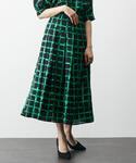 新作のオリジナルプリント、ペイントチェックシリーズよりスカートのご紹介です。 目を惹くチェック柄がポイントのスカートは、女性らしく晩夏におすすめのアイテムです。 ウエスト周りはハイウエストでスッキリとした印象で、素材の軽さでフワッと広がるフレアシルエットが上品な一枚です。 グリーンのブラウスを合わせたワンカラーコーデがおすすめです。