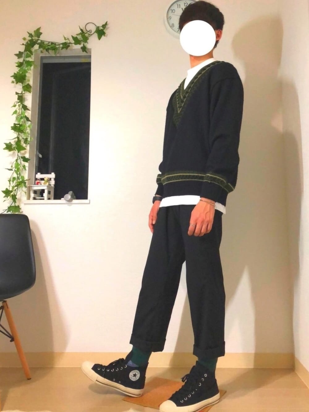 いつもコーデを見てくれてありがとうございます😊 今回はブラックで統一しつつ、ホワイトとグリーンの差し色を加えてみました! 配色もブラック、ホワイト、グリーンの3色になっているので落ち着いた印象になってると思います。笑 最近、古着屋で購入したチルデンニットのグリーンの配色が気に入っています! このコーデがいいと思ってくれた方は、いいね👍、お気に入り➕お願いします🤲 では👋