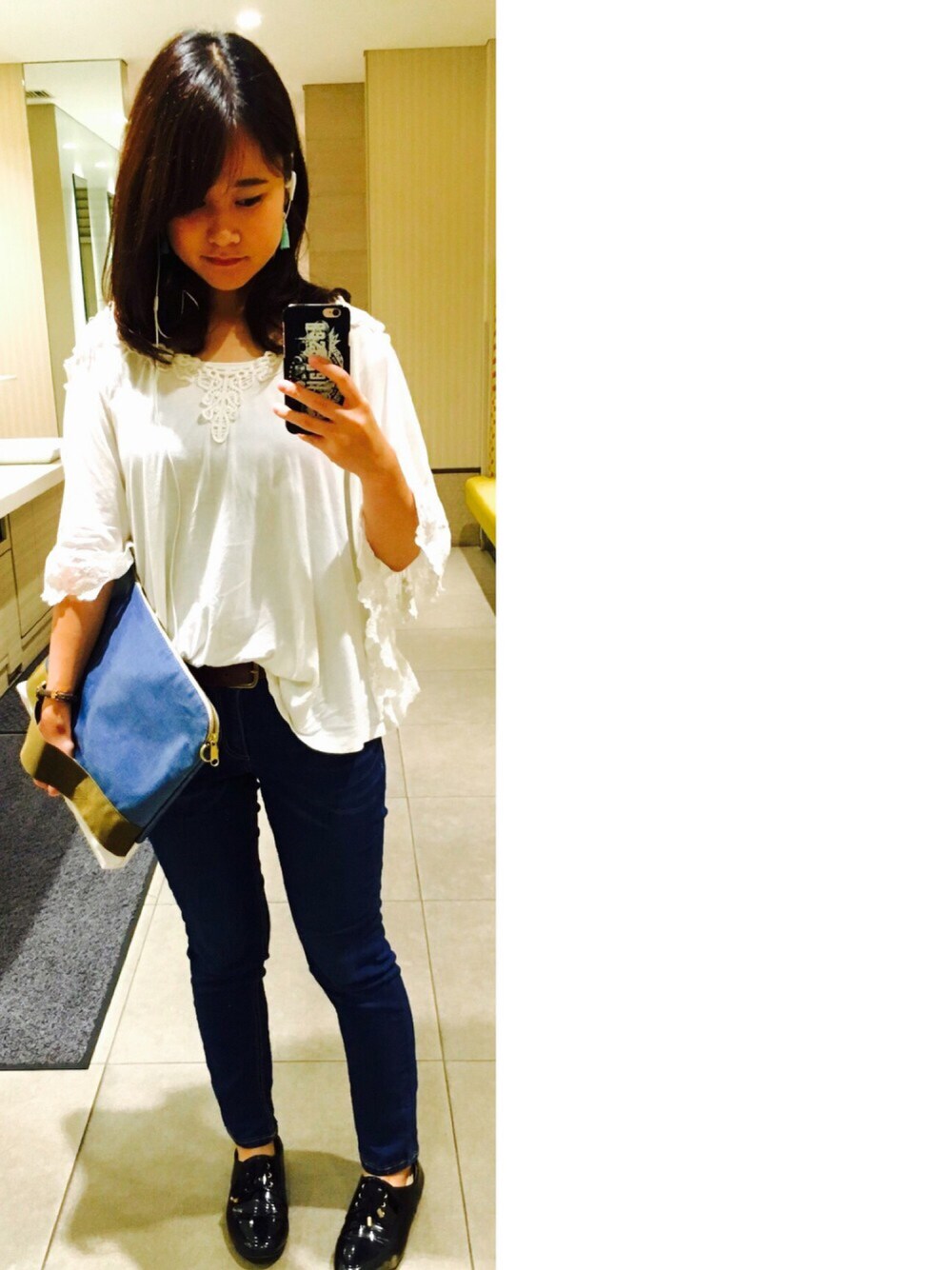 お友達とランチでした! よく登場するふわっとしたフリルトップスをスキニーパンツにインいしてみました 写真撮った時トップスのインの仕方が悪くて見た目悪くなってしまいましたね…😨 イヤリングは自分で手作りしてみました! 可愛いの作れたと自己満足🙆 友達に雰囲気変わったって言ってもらえて嬉しかったです! では、見てくれた皆様、ありがとうございます