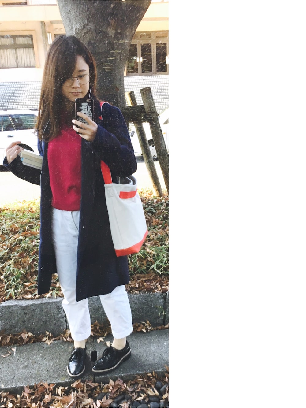 図書館のガラス張りに映った自分を撮影📷 図書館帰りだから、本を手に持って、真面目ちゃんみたいですね📚 今日の服の主役は最近購入した、ショルダーバッグ! ビビッドピンクの様な赤と白が可愛くて、服も同じようにピンクと白にしてみました! バッグ可愛いし使いやすい😋 では、見てくれた皆様、ありがとうございます