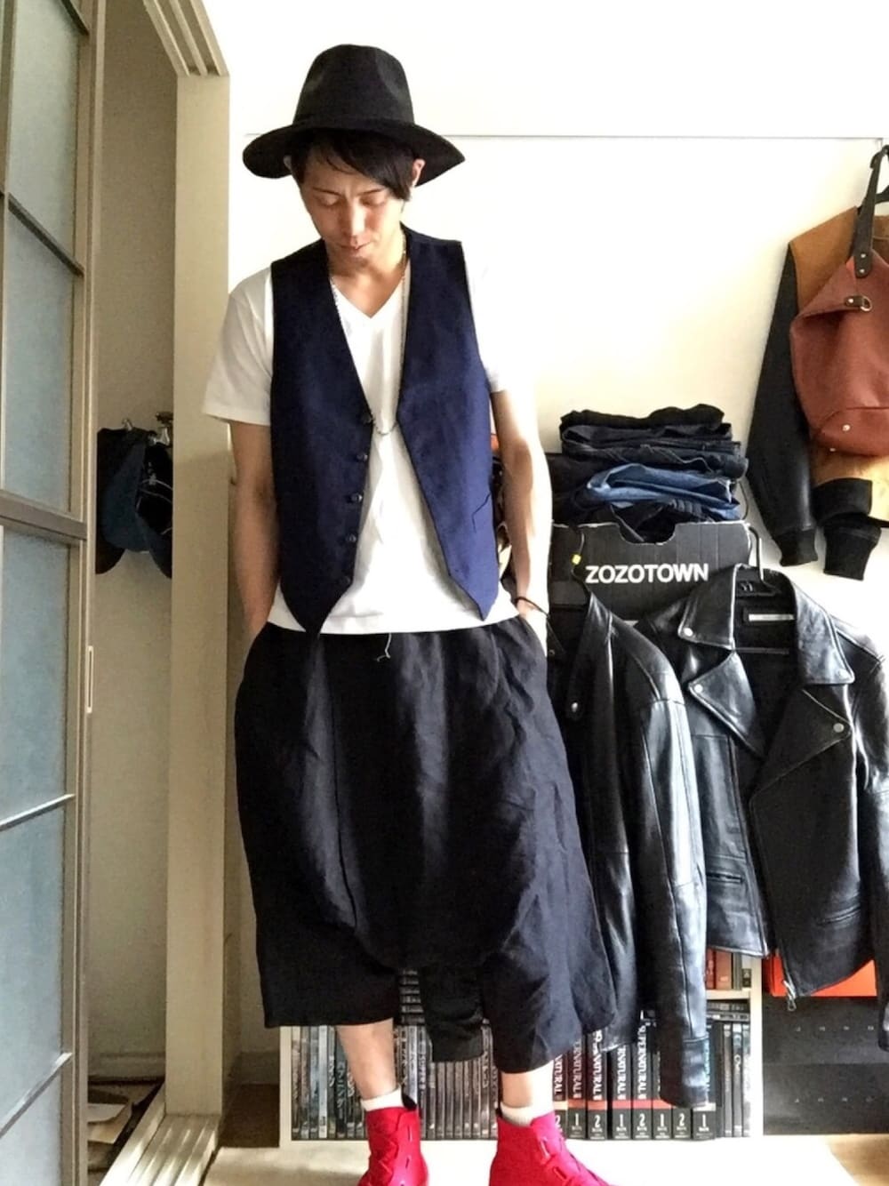 こんにちは〜 撮り溜めコーデです。 ハット、白Tシャツ、ジレ、デザインパンツ、スニーカーですねー 撮り溜め増えてきたから、ちょくちょく更新しないとねー