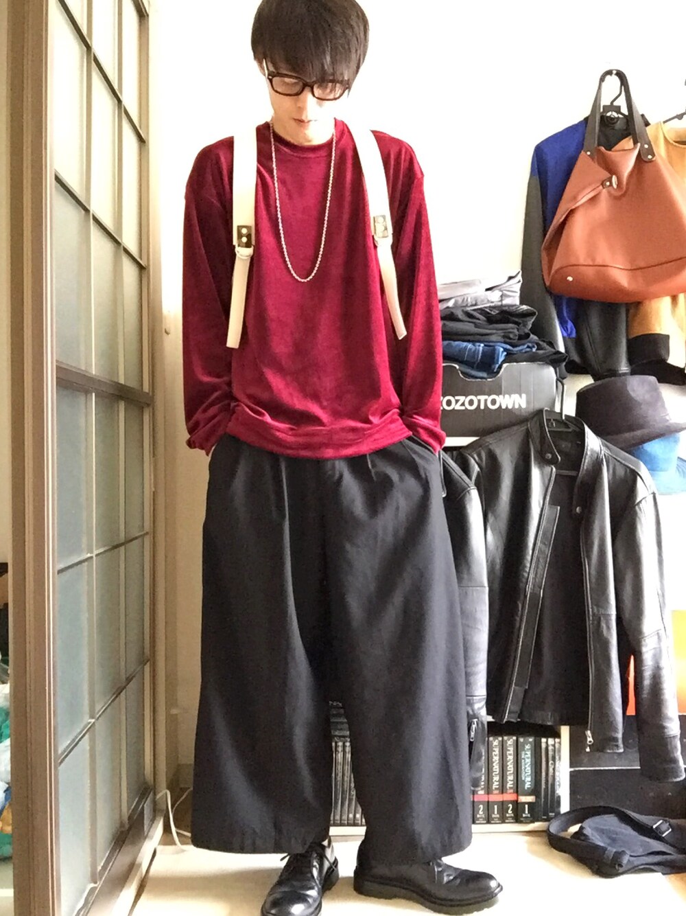 Y-sukeのTシャツ/カットソー「ベロアクルーネックプルオーバーカットソー」を使ったコーディネート