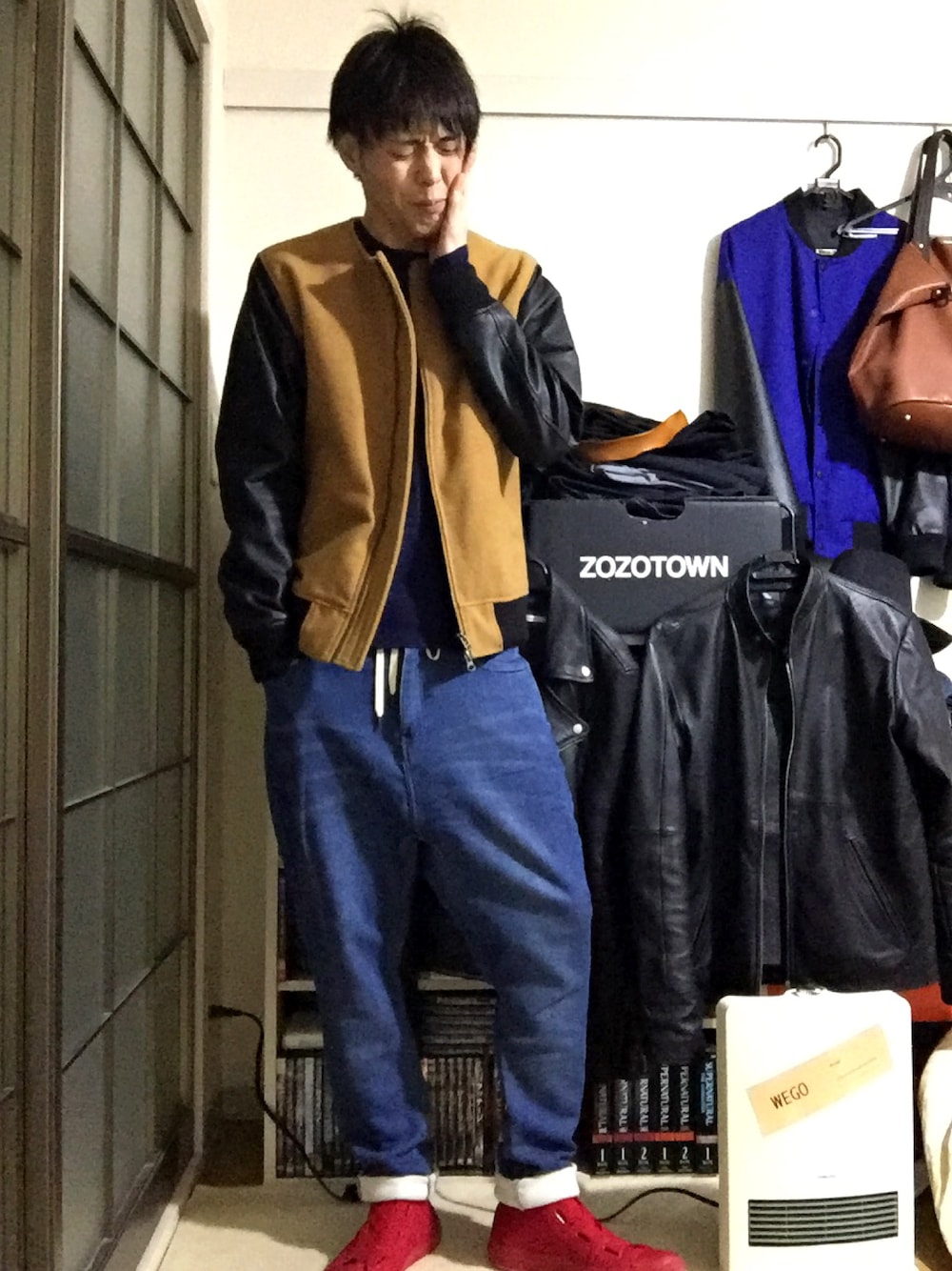 こんばんはー 本日2回目のコーデですねー ノーカラースタジャン、ネイビーニット、スウェットサルエル、ハイカットスニーカーですねー さっき、歯の神経をとる治療をしてきました。 長い道のりだけど、しっかりお金をかけて治療しよう🤕 歯は、死ぬまで付き合って行くカラダの一部だからねー🙂 でわでわ また、明日☺️