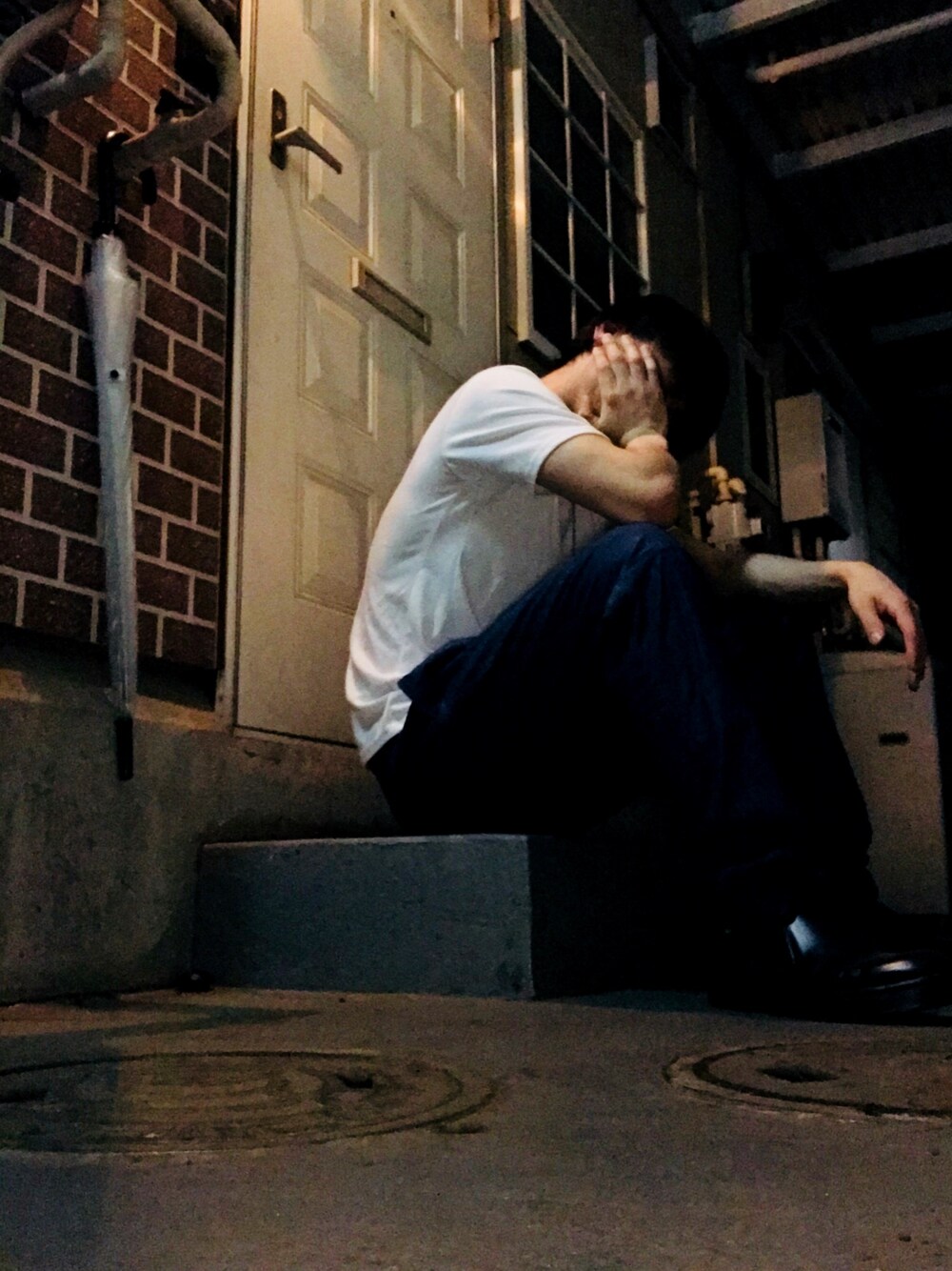 こんにちはー 昨日の夜コーデですねー 白Tシャツ、サルエルデニム、レザースリッポンですねー ニキビ潰れて、血がドパーって出て気持ち悪い😓 顔に絆創膏してるー けして、喧嘩とかしてませんよー