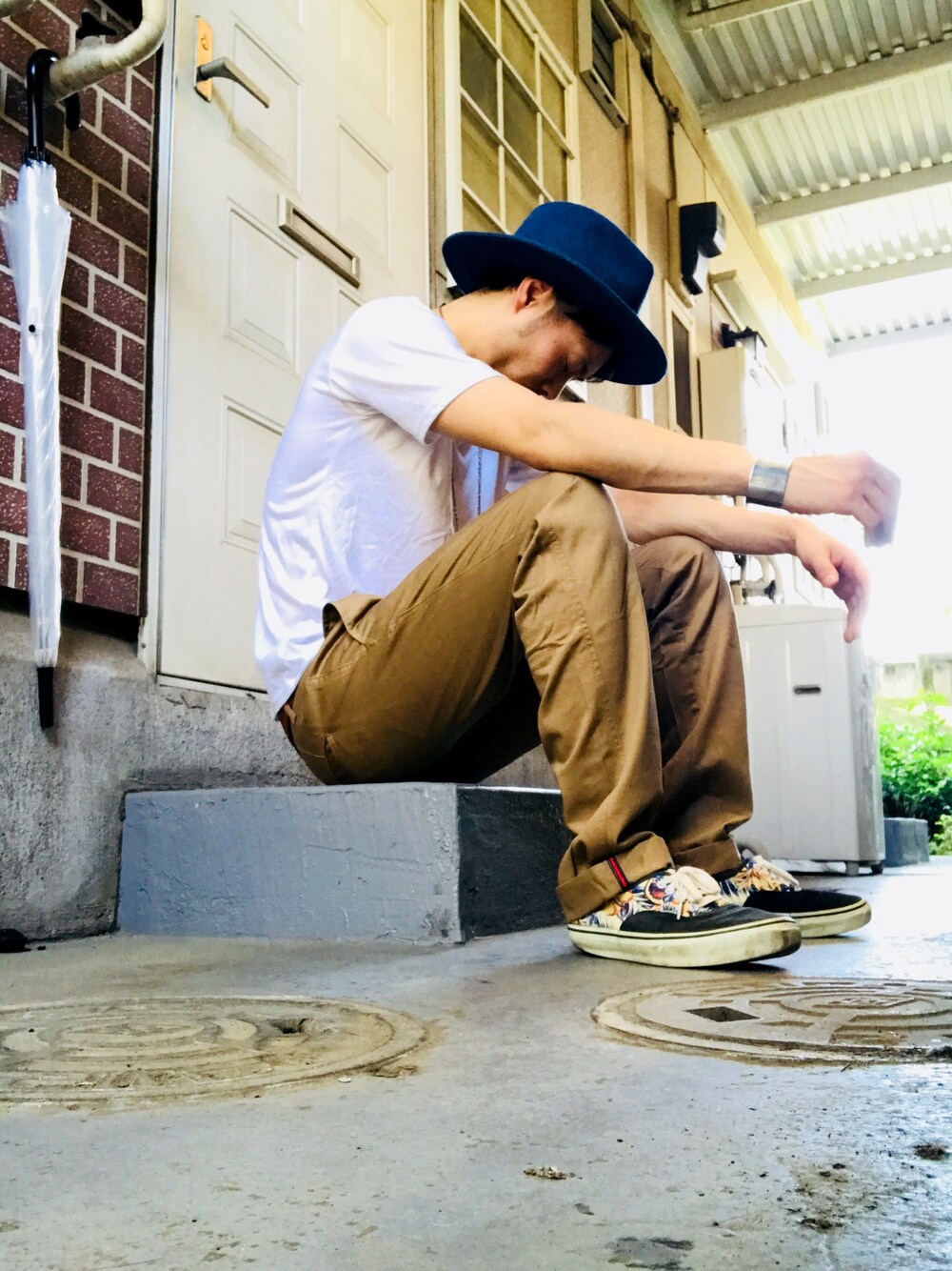こんにちは🌞 暑い💦 今日は、デニムハット、白Tシャツ、サルエルチノ、スニーカーですねー ヤバい…暑い…💦 ガリガリ君を、箱で買って食べ切ってしまった😓 あー、しんどい💦 しっかり、水分補給をして過ごしましょうー