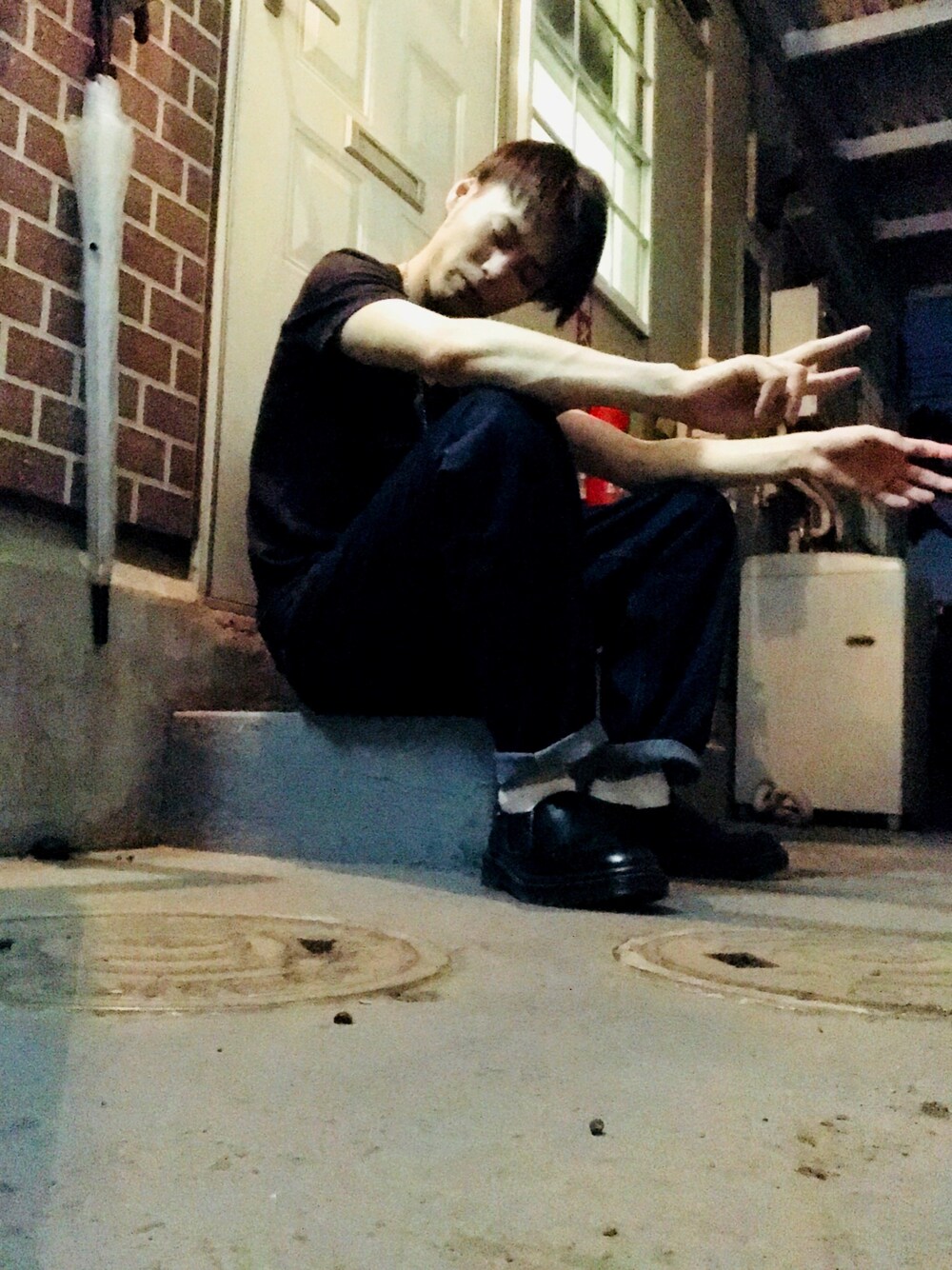 こんばんはー 今日は、黒Tシャツ、サルエルワイルドデニム、レザースリッポンですねー 残業ウィークではないなー やっぱり、波があるなー コーラ飲んで、寝よ😴