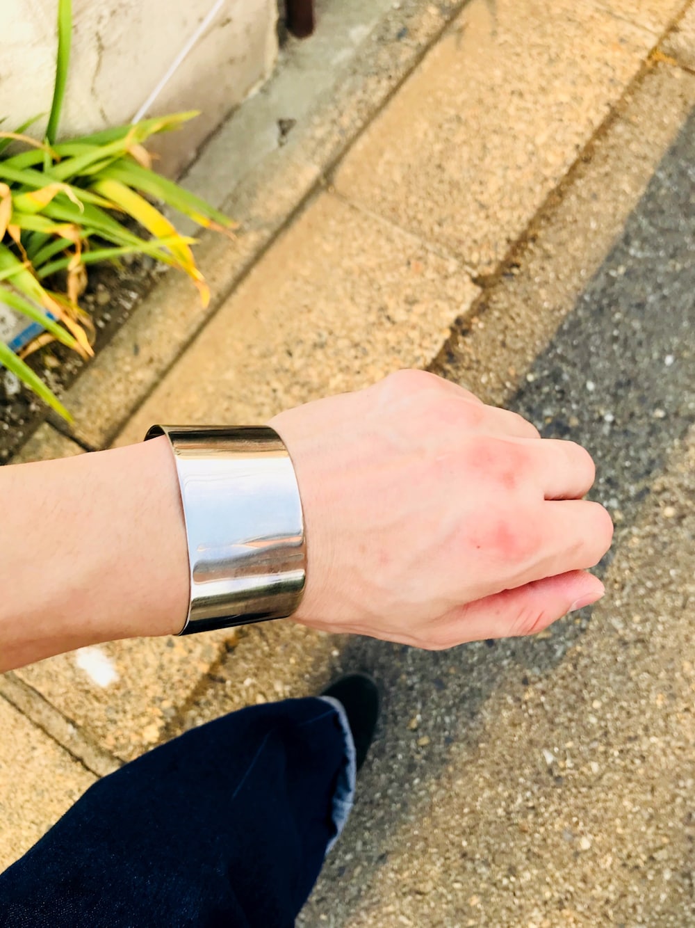 こんばんはー 今日は、シルバーバングル、デニムワイドパンツ、ハイカットスニーカーですねー この形のバングル好きだわ☺️ アニメとか、ゲームのキャラクターが着けてそうだから好きだわー☺️ たまには、違う写メみたいな📸 あづーいいーー💦 あづーいいーー💦 水分でお腹タプタプ😓 ラーメン食べよー🍜