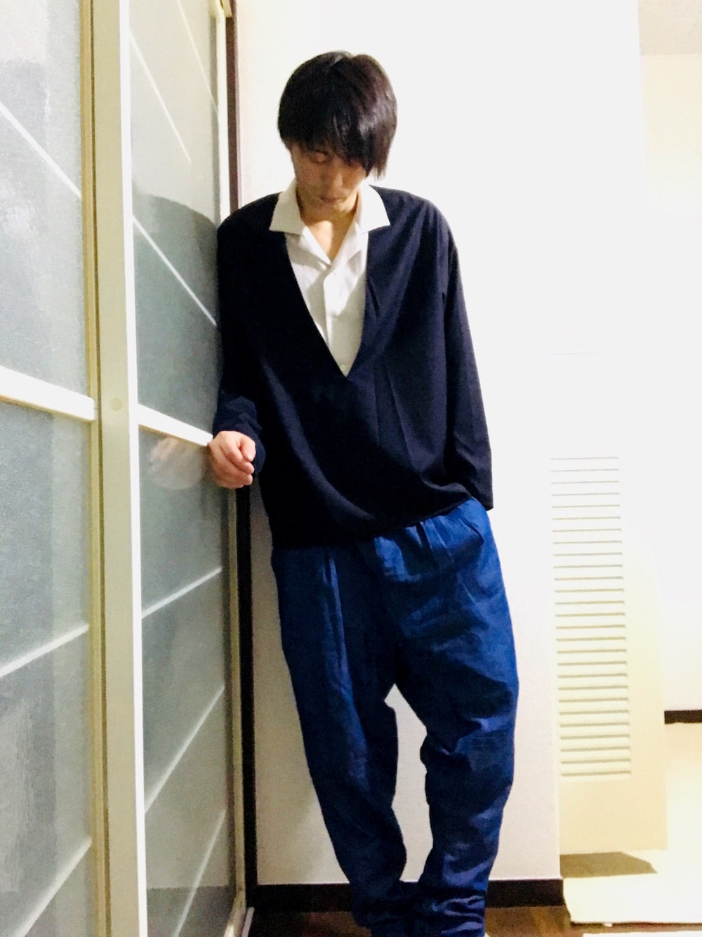 こんばんはー 今日は、フハクVネックプルオーバー、オープンカラーシャツ、サルエルデニム、ローファーですねー 俺っぽくないですよねー😓 最近、アジフライが妙に美味い🍤😋 白身のフライは、美味いなぁ😋