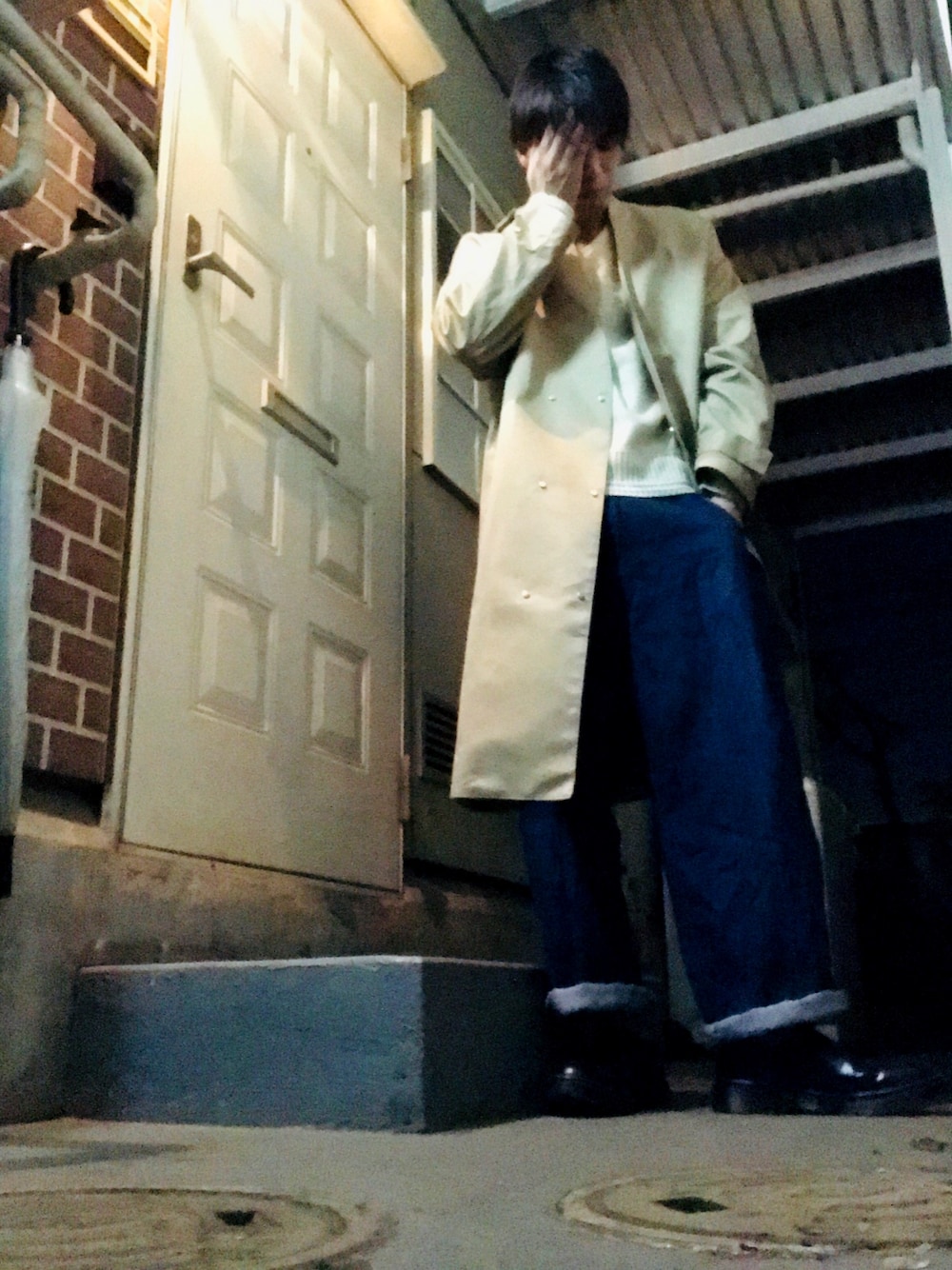 こんばんはー 今日は、ノーカラーコート、白ニット、ワイドデニム、レザースリッポンですねー あーさーむーい🌬 しかも、残業続き… ヒーター買おうー 掛け布団の買おうー