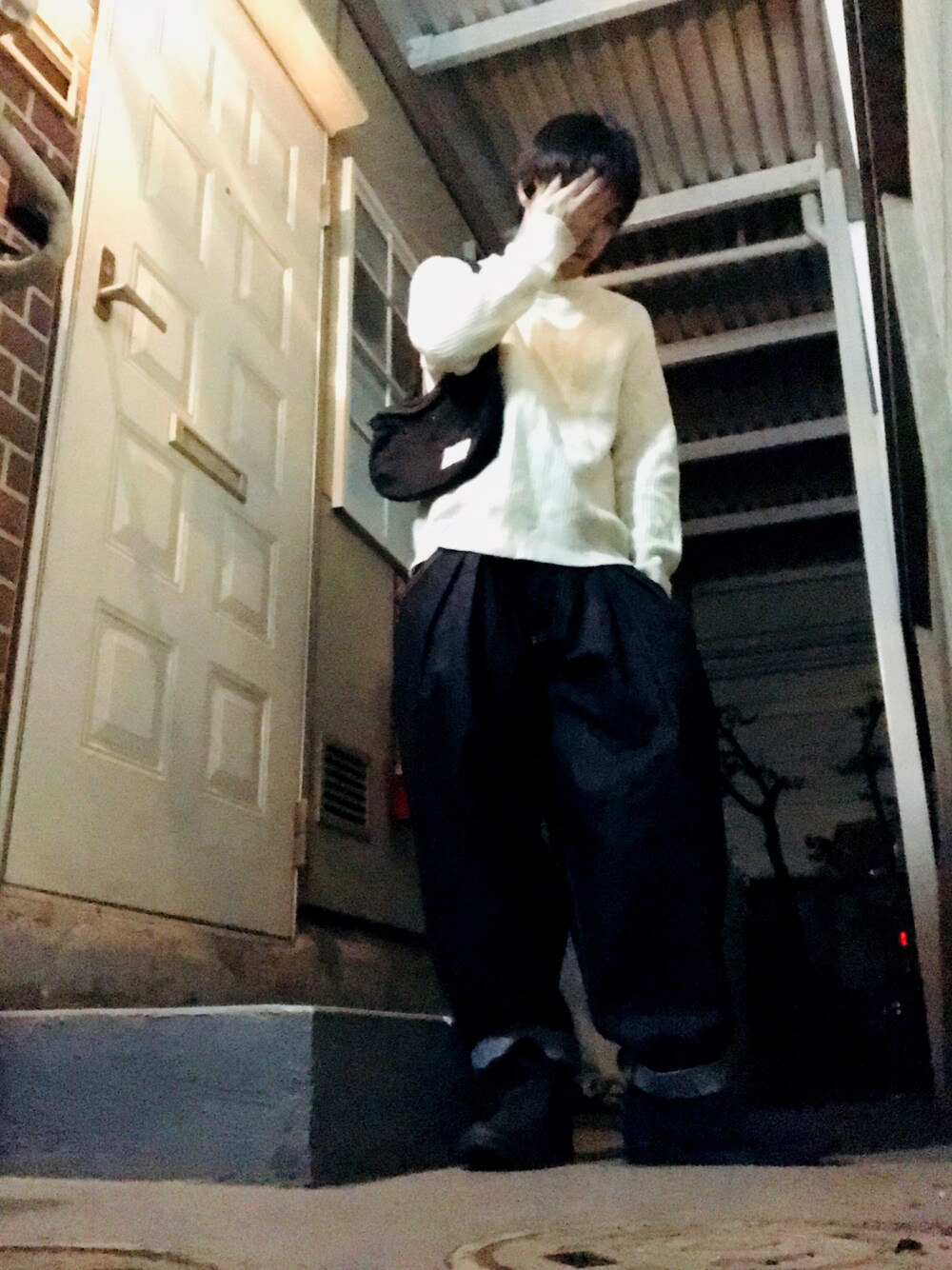 こんばんはー 今日は、白ニット、ワイドデニム、スニーカーですねー 今日は、眠たい😪 人間、冬になるにつれて冬眠しなきゃかんね😪