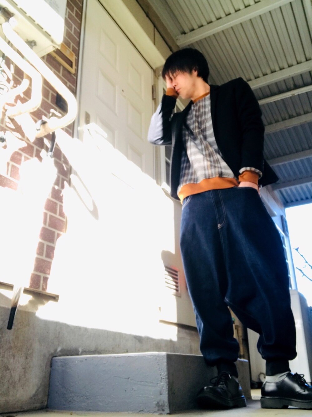 おはよーごぜーます☀️ 今日は、ショートジャケット、チェックニット、サルエルデニム、オックスフォードシューズですねー 今日も、ひま人なのでぷらぷらしてきます🚋🚶♂️