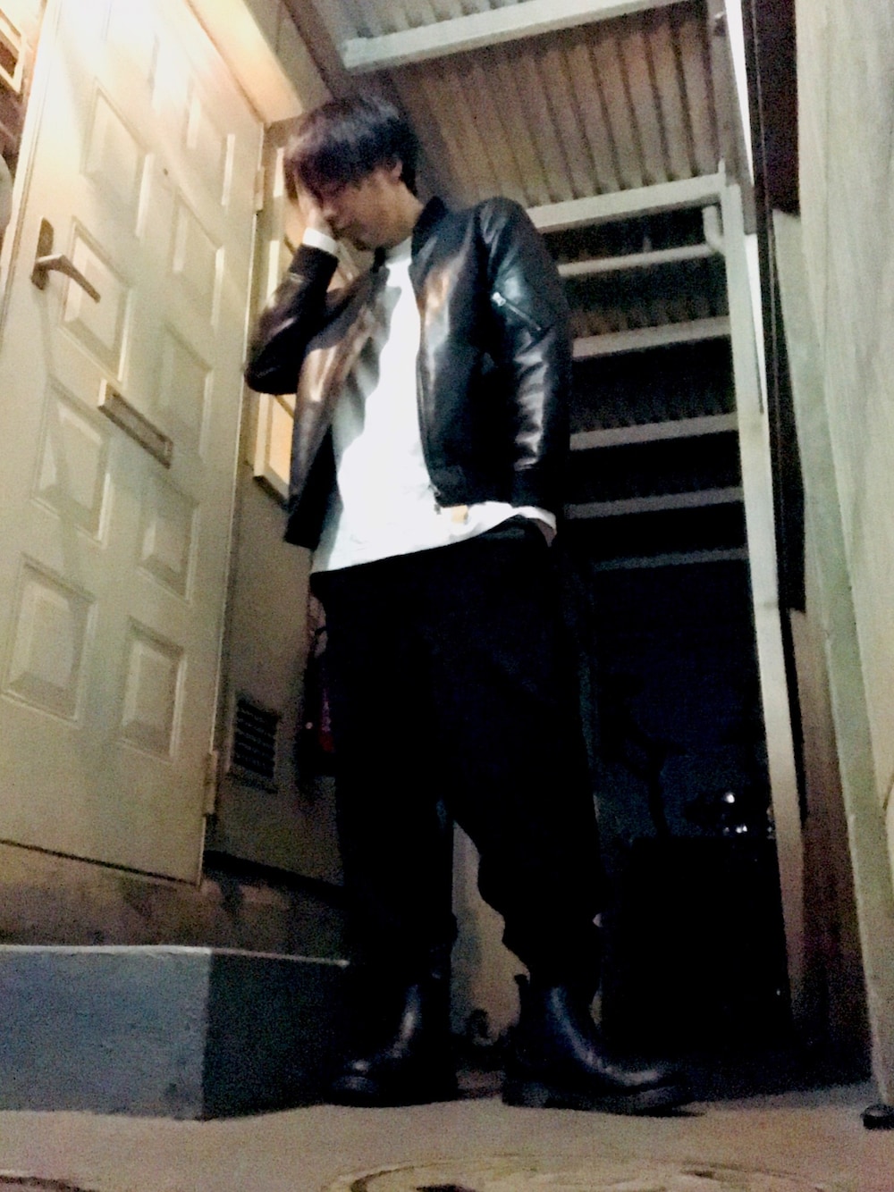 こんばんはー 今日は、ライダース、白ロンT、サルエルパンツ、ブーツですねー 今週は、残業ばかりでクタクタだ。😱