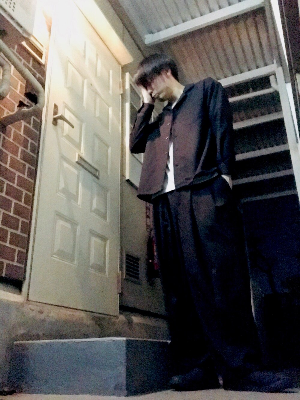 こんばんはー🌝 今日は、オープンカラーシャツ、ロンT、バルーンパンツ、スニーカーですねー 今日は、暖かくて非常に眠かったです🥱