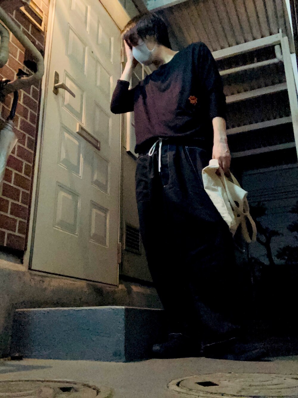 こんばんはー🌝 今日は、ドルマンカットソー、バルーンパンツ、スニーカーですねー ブラックコーデですー 最近、思った。 Tシャツは、白か黒しかない… なんか、変な人😭