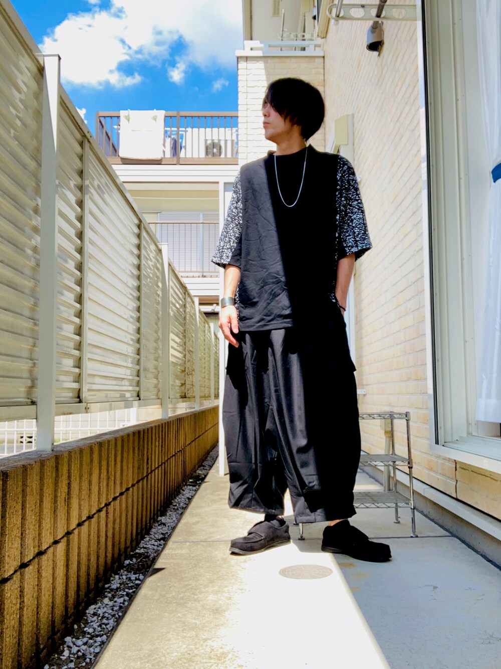 おはようございます☀ 今日は、ビックTシャツ、ワイドバルーンパンツ、スリッポンですねー ブラックコーデですねー このパンツに、ジャケット着たらどこかのヤンキーみたいでカッチョいい☺️ 早く、涼しくなって欲しい☺️