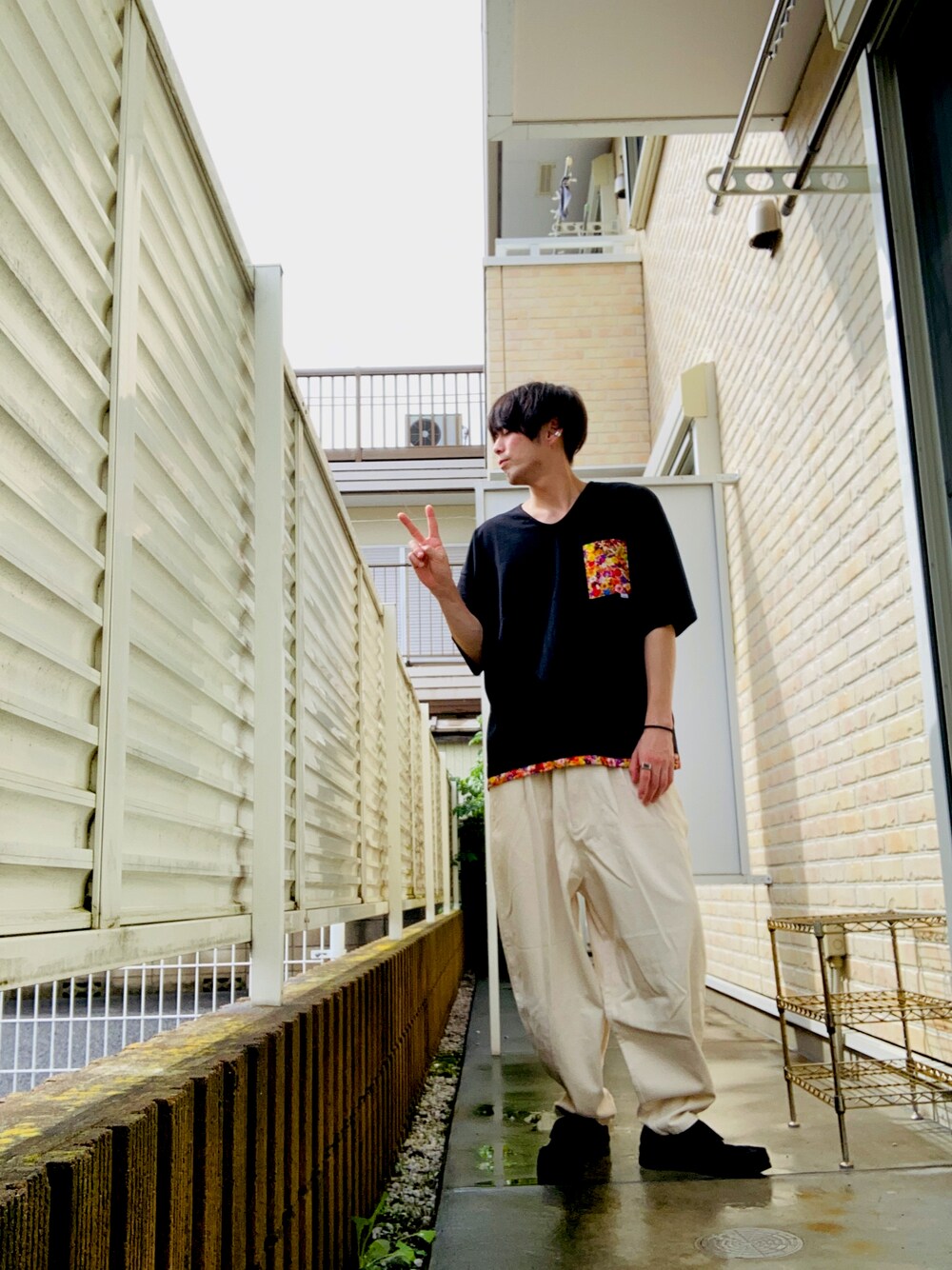 こんにちは🌦 今日は、フラワーカットソー、バルーンパンツ、スリッポンですねー 今年も、ラブ&ピースに参加しまーす☺️✌🏻